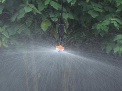 微噴是利用折射式,施轉(zhuǎn)式成輻射式微型噴頭將水噴灑到作物枝葉等區(qū)域的灌水形式。微噴的工作壓力低,流量小,既可以增加土壤水分,又能提高空氣濕度,起到調(diào)節(jié)局部小氣候的功效,應(yīng)用面十分廣泛。另外,還可以借助部分微噴頭的超強(qiáng)霧化功能,用于扦插育苗、飼養(yǎng)場(chǎng)降溫等場(chǎng)所。